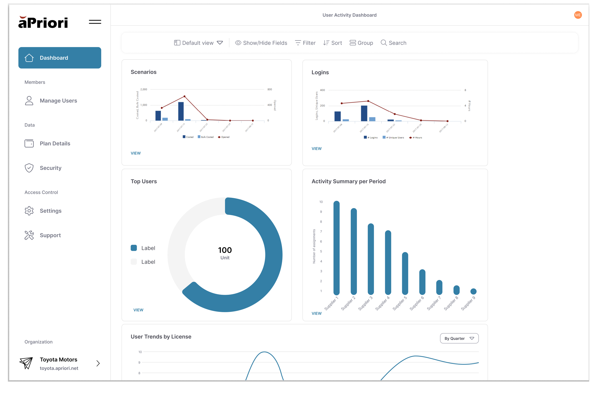 The dashboard gives admins visibility into user behavior, allowing them to see how licenses are being utilized and if efficiency can be improved.